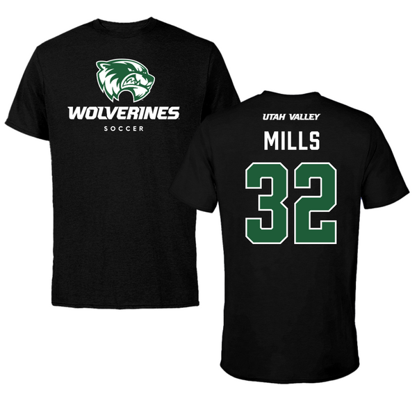 Utah Valley University Soccer Black Wolverines Tee - #32 Aden Mills
