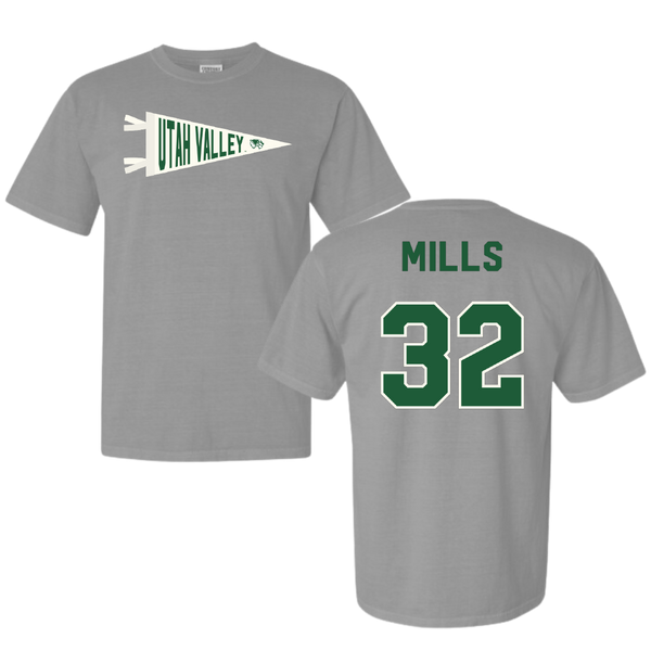 Utah Valley University Soccer Light Gray Pennant Comfort Colors Tee - #32 Aden Mills