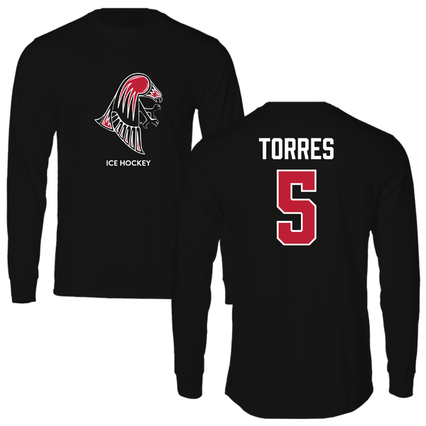 University of Wisconsin-River Falls Ice Hockey (M) Black Mascot Long Sleeve - #5 Aidan Torres