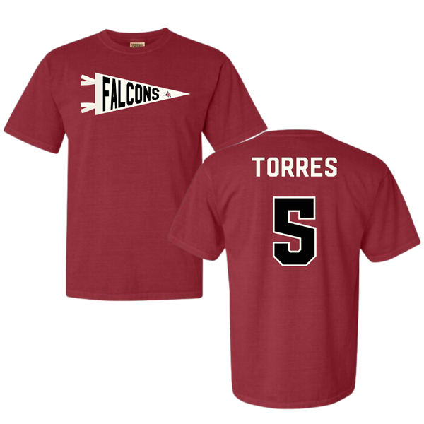 University of Wisconsin-River Falls Ice Hockey Crimson Pennant Comfort Colors Tee - #5 Aidan Torres