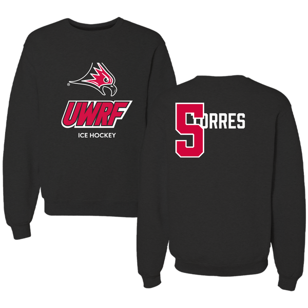 University of Wisconsin-River Falls Ice Hockey (M) Black Crewneck - #5 Aidan Torres