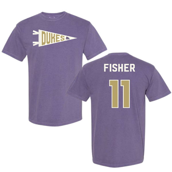 James Madison University Football Purple Pennant Comfort Colors Tee - #11 Aiden Fisher