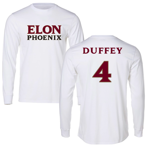 Elon University Baseball White Long Sleeve - #4 Alex Duffey