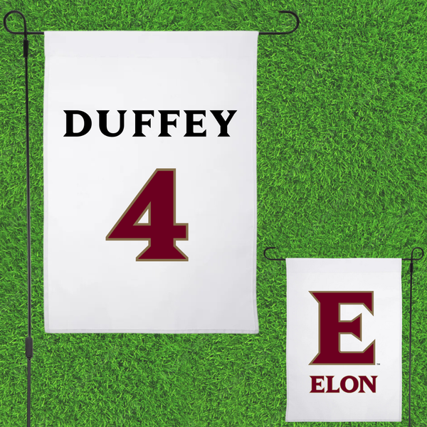Elon University Baseball White Garden Flag - #4 Alex Duffey