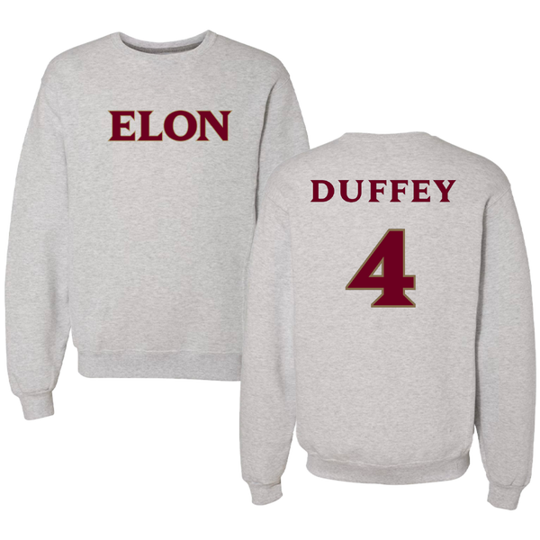 Elon University Baseball Light Gray Crewneck - #4 Alex Duffey