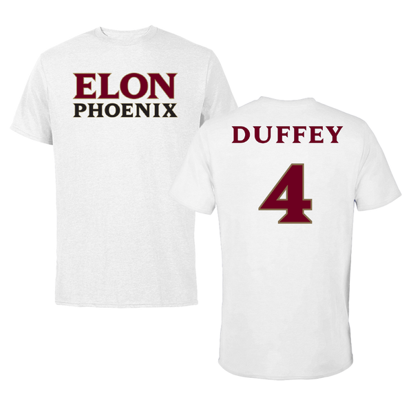 Elon University Baseball White Tee - #4 Alex Duffey