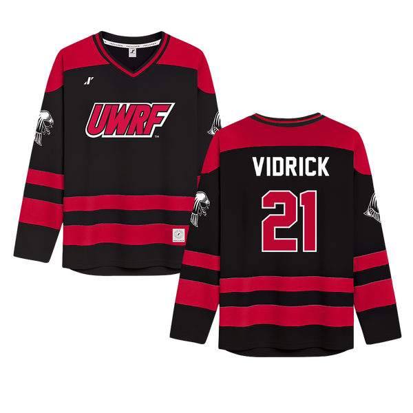 University of Wisconsin-River Falls Black Hockey Jersey - #21 Anthony Vidrick