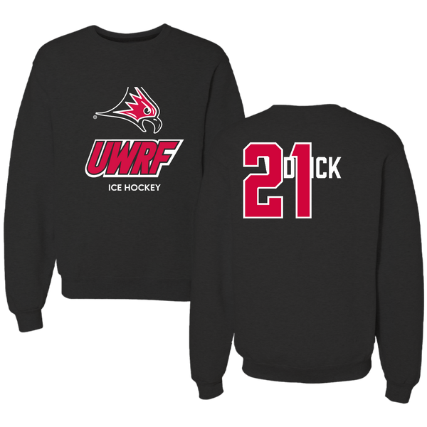 University of Wisconsin-River Falls Ice Hockey (M) Black Crewneck - #21 Anthony Vidrick