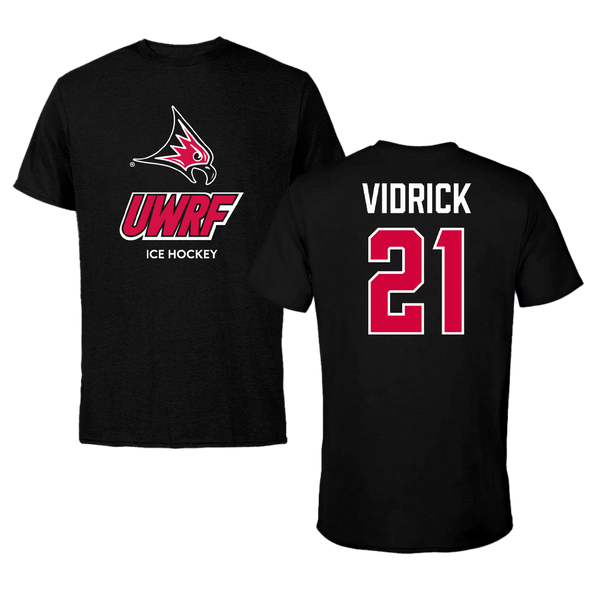 University of Wisconsin-River Falls Ice Hockey (M) Black Tee - #21 Anthony Vidrick