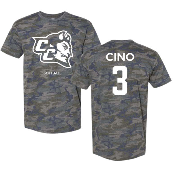 Central Connecticut State University Softball Vintage Camo Tee - #3 Ava Cino