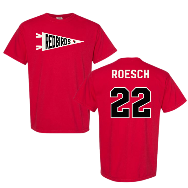 Illinois State University Baseball Red Pennant Comfort Colors Tee - #22 Braden Roesch