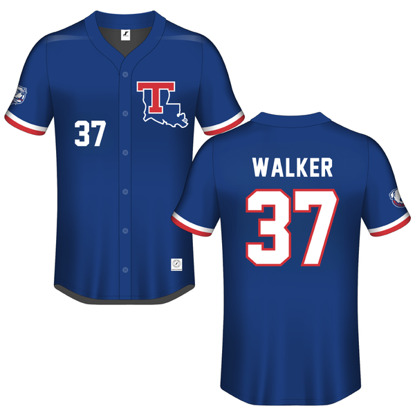 Louisiana Tech University Blue Button-Down Jersey - #37 Brodey Walker