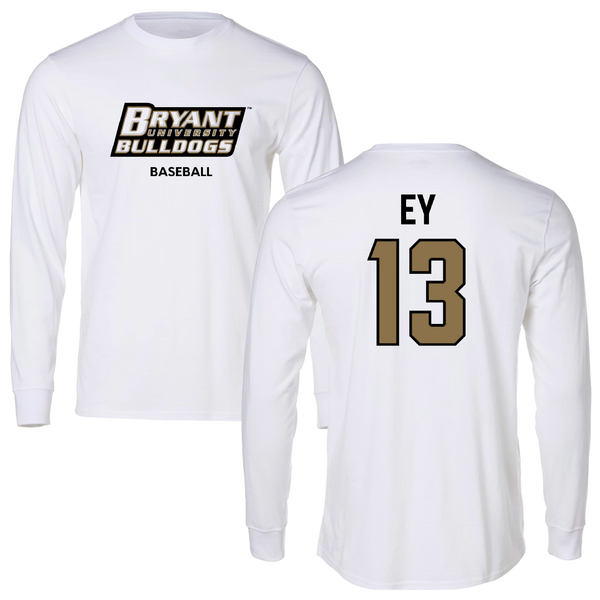 Bryant University Baseball White Classic Long Sleeve - #13 Brooks Ey