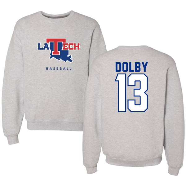 Louisiana Tech University Baseball Gray Crewneck - #13 Bryce Dolby
