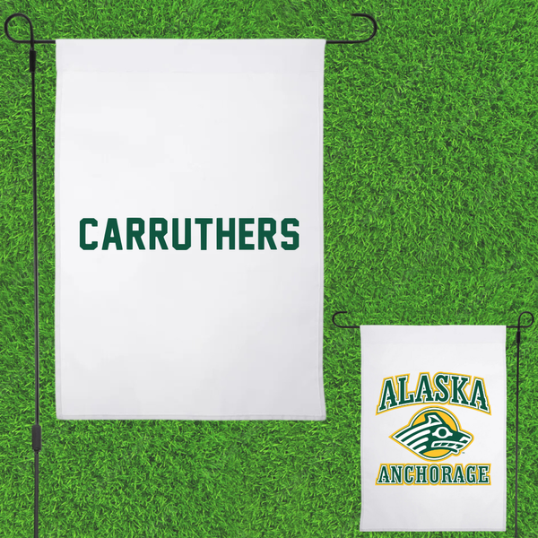 University of Alaska Anchorage Alpine Skiing White Garden Flag - Caeden Carruthers