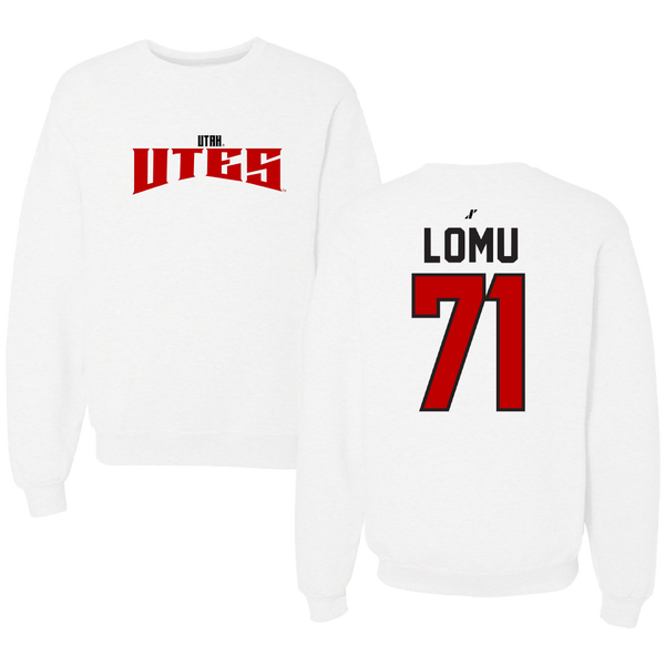 University of Utah Football White Classic Crewneck - #71 Caleb Lomu