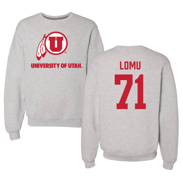 University of Utah Football Gray Crewneck - #71 Caleb Lomu