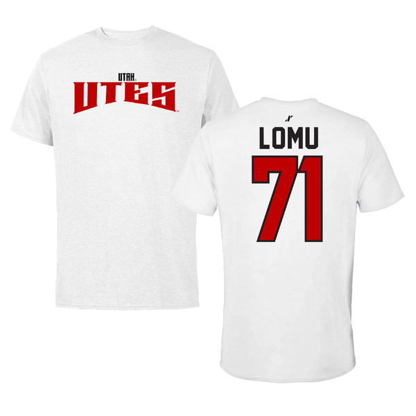 University of Utah Football White Classic Tee - #71 Caleb Lomu