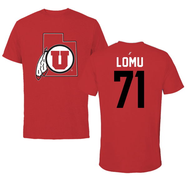 University of Utah Football Red State Tee - #71 Caleb Lomu