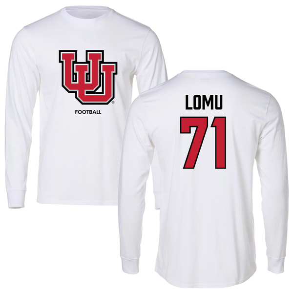 University of Utah Football White Block Long Sleeve - #71 Caleb Lomu