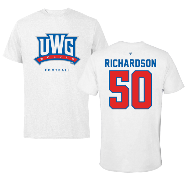 University of West Georgia Football White Tee - #50 Cedric Richardson
