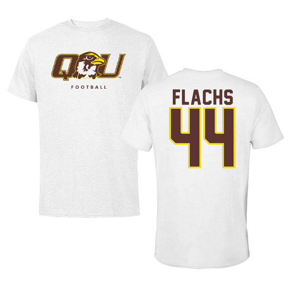 Quincy University Football White Classic Tee - #44 Chris Flachs