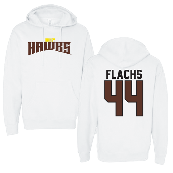 Quincy University Football White Classic Hoodie - #44 Chris Flachs