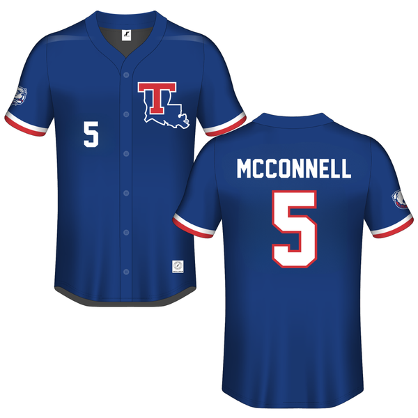 Louisiana Tech University Blue Button-Down Jersey - #5 Cole McConnell