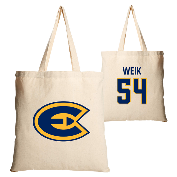 University of Wisconsin-Eau Claire Baseball Tan Canvas Tote Bag - #54 Connor Weik