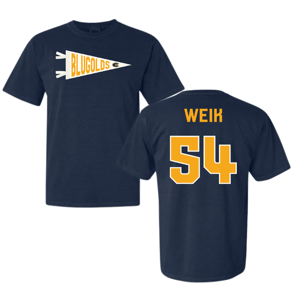 University of Wisconsin-Eau Claire Baseball Navy Pennant Comfort Colors Tee - #54 Connor Weik