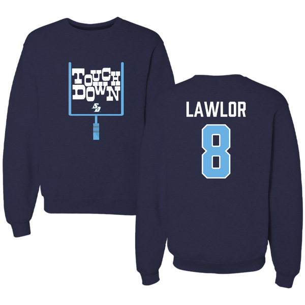 University of San Diego Football Navy Touchdown Crewneck - #8 Conor Lawlor