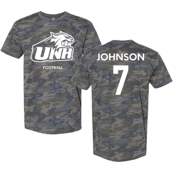 University of New Hampshire Football Vintage Camo Tee - #7 Dajzuan Johnson