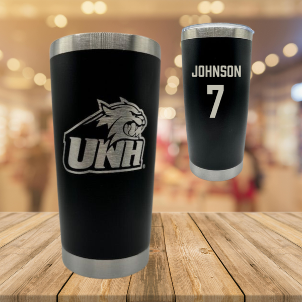 University of New Hampshire Football Black Stainless Steel Tumbler - #7 Dajzuan Johnson