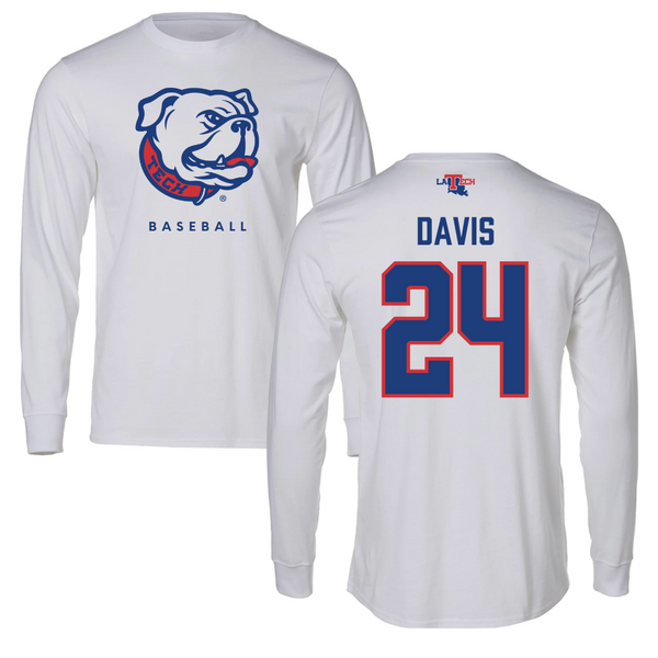 Louisiana Tech University Baseball White Long Sleeve - #24 Dalton Davis