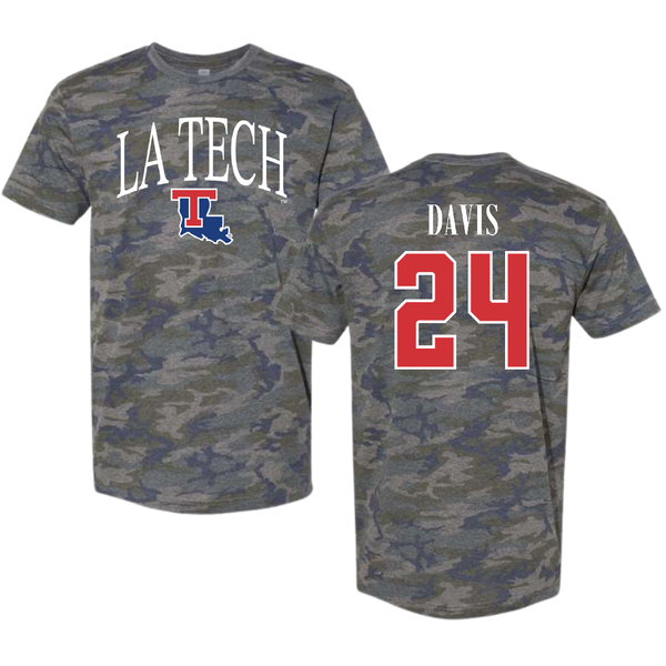 Louisiana Tech University Baseball Vintage Camo Tee - #24 Dalton Davis
