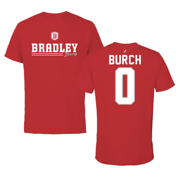 Bradley University Basketball Red Block Tee - #0 Demarion Burch