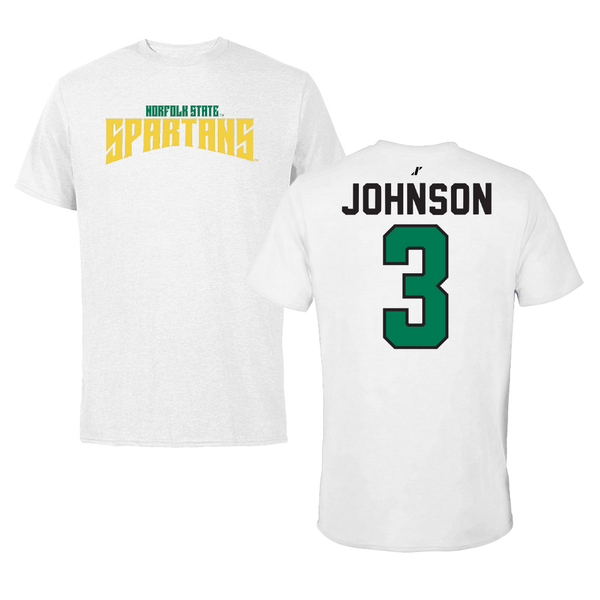Norfolk State University Basketball White Classic Tee - #3 Diamond Johnson