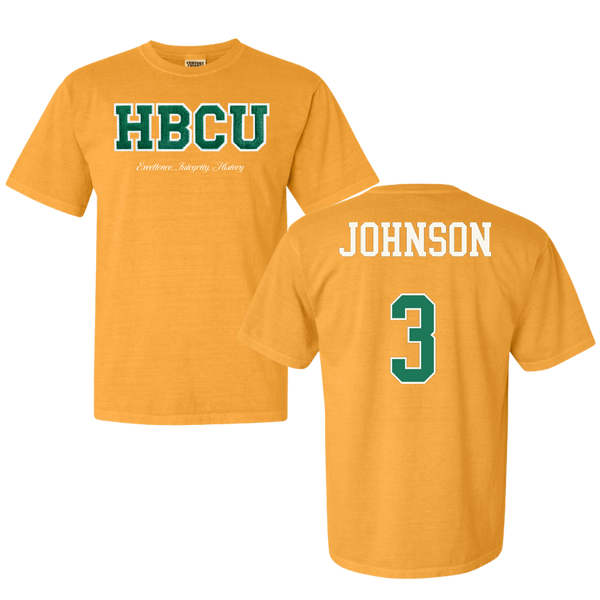 Norfolk State University Basketball (W) Gold HBCU Varsity Comfort Colors Tee - #3 Diamond Johnson