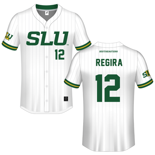 Southeastern Louisiana University White Pinstripe Button-Down Jersey - #12 Dom Regira