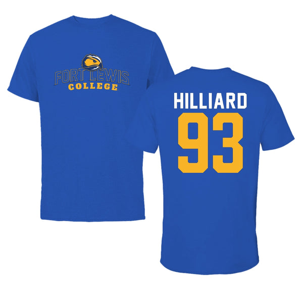 Fort Lewis College Football Blue Tee - #93 Dorrian Hilliard