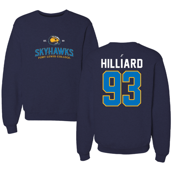 Fort Lewis College Football Navy Crewneck - #93 Dorrian Hilliard