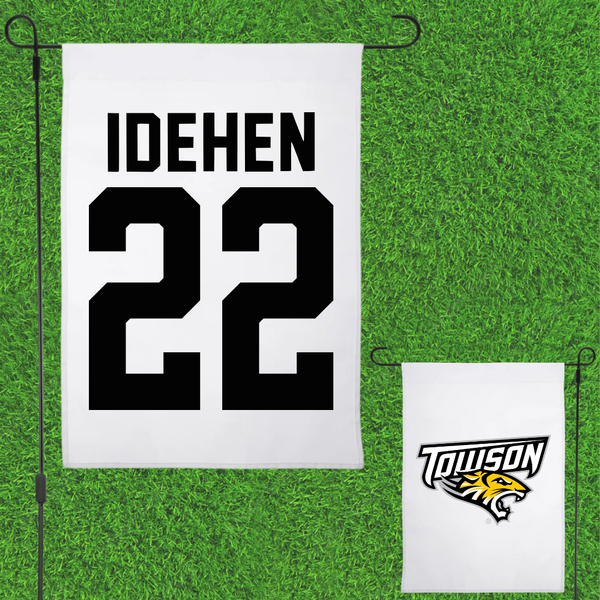 Towson University Football White Garden Flag - #22 Dumkele Idehen