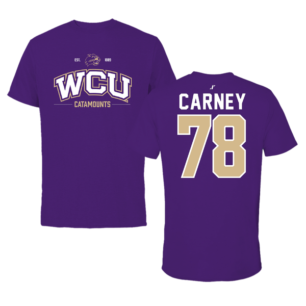 Western Carolina University Football Purple Tee - #78 Evan Carney