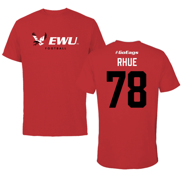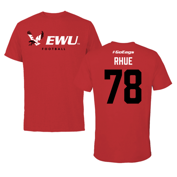 Eastern Washington University Football Red Tee - #78 Gabe Rhue