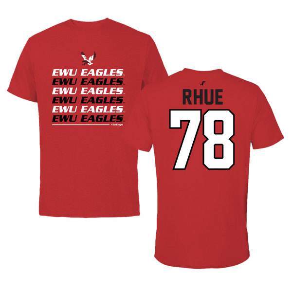 Eastern Washington University Football Red Block Tee - #78 Gabe Rhue