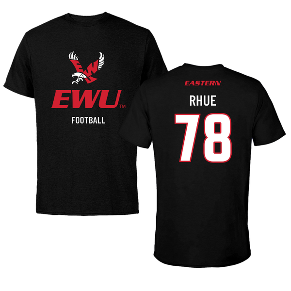 Eastern Washington University Football Black Eastern Tee - #78 Gabe Rhue