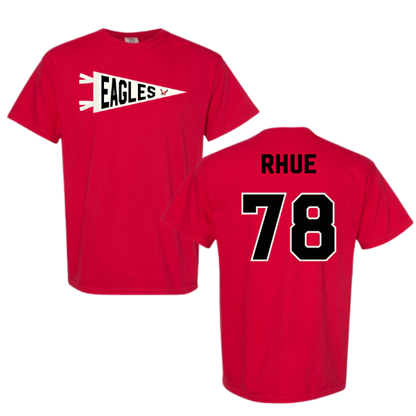 Eastern Washington University Football Red Pennant Comfort Colors Tee - #78 Gabe Rhue