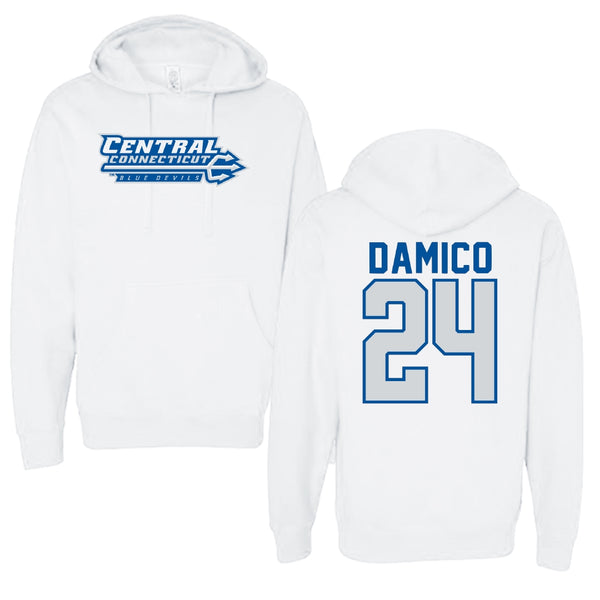 Central Connecticut State University Softball White Hoodie - #24 Gianna Damico