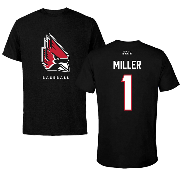 Ball State University Baseball Black Performance Tee - #1 Grant Miller