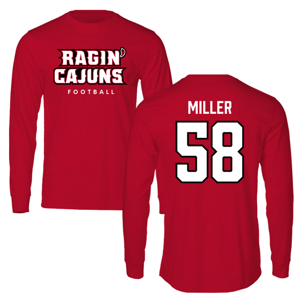 University of Louisiana at Lafayette Football Red Long Sleeve - #58 Grant Miller